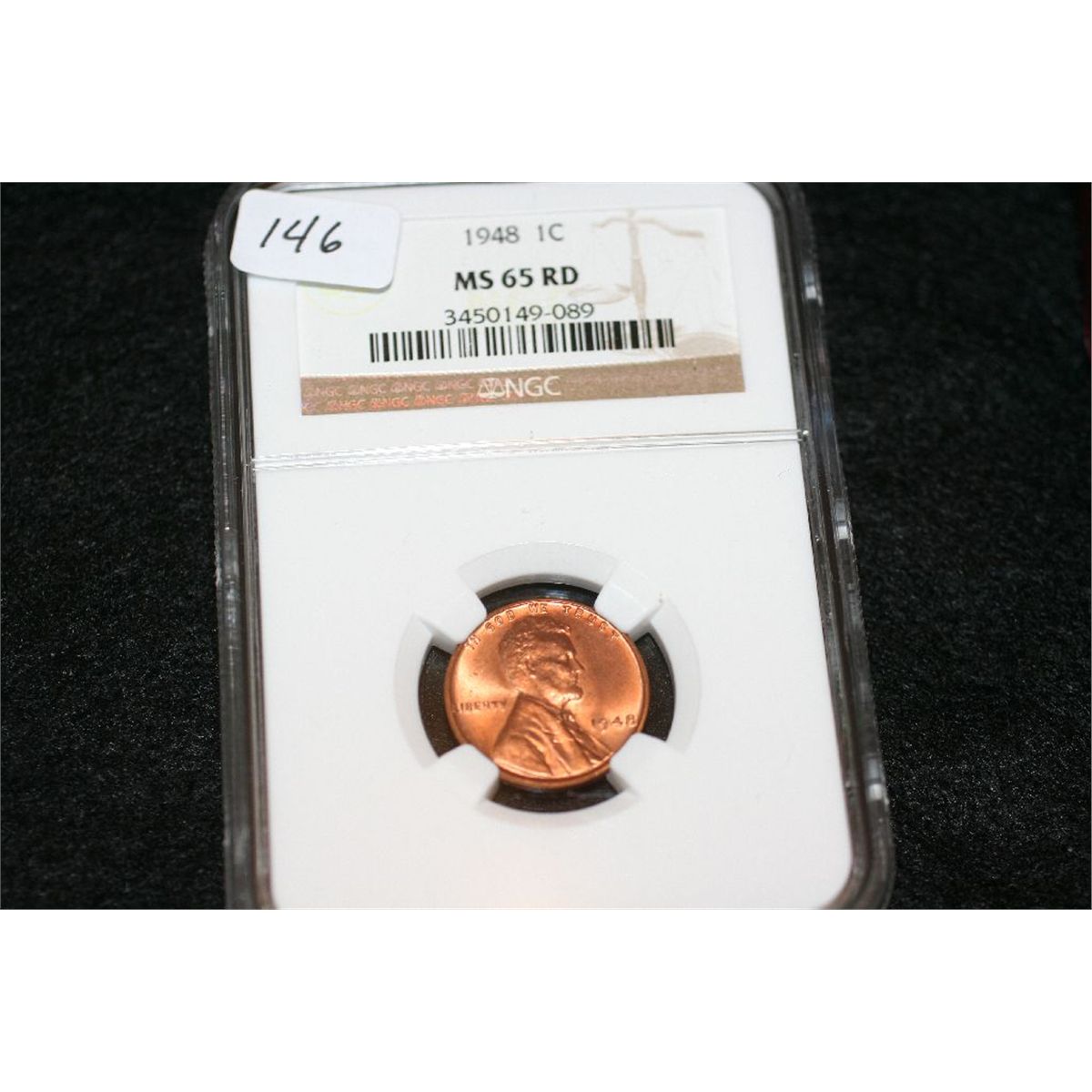 1948 Wheat Back penny, NGC graded, MS65 RD