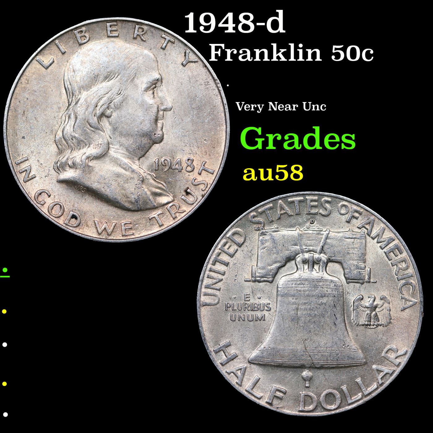 1948-d Franklin Half Dollar 50c Grades Choice AU/BU Slider.