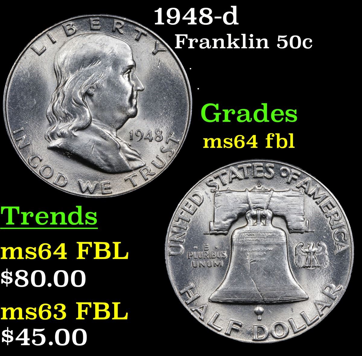 1948-d Franklin Half Dollar 50c Grades Choice Unc FBL.