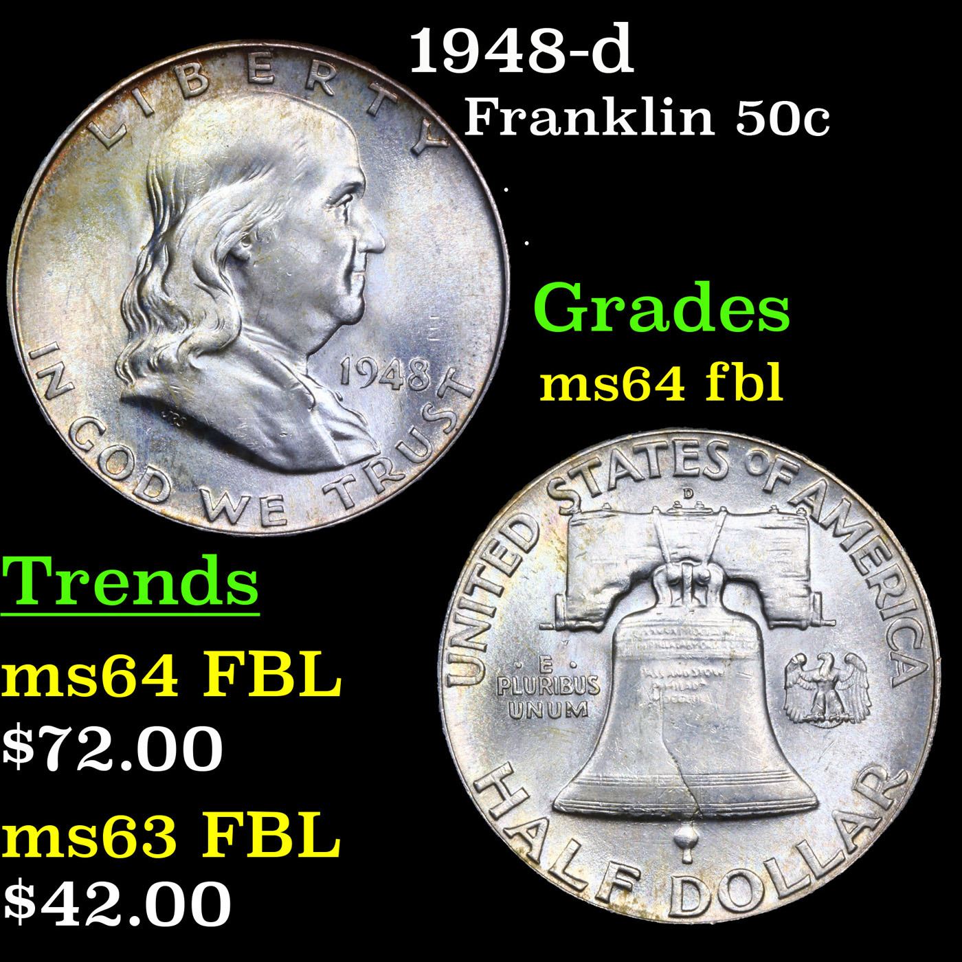 1948-d Franklin Half Dollar 50c Grades Choice Unc FBL.