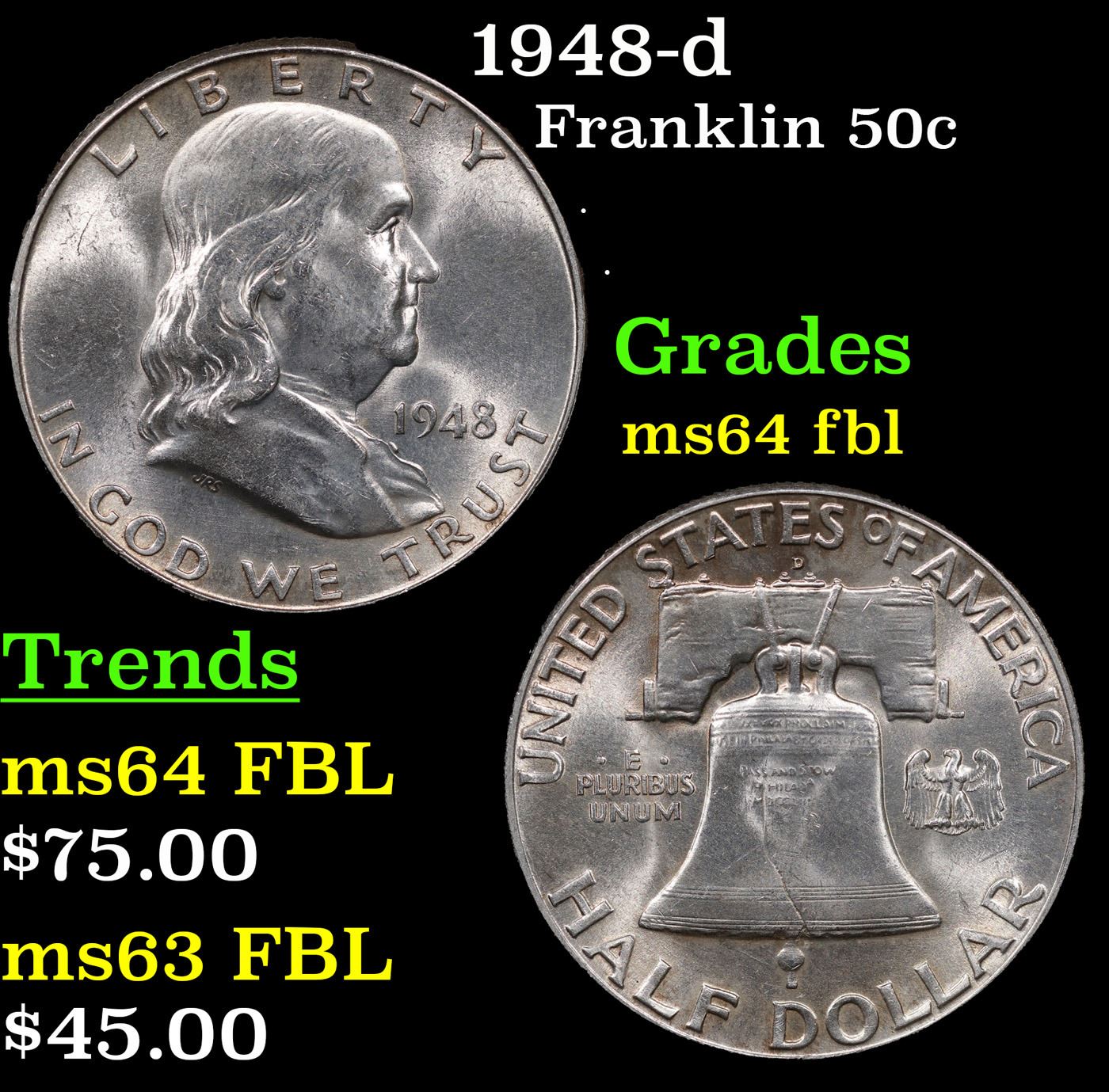 1948-d Franklin Half Dollar 50c Grades Choice Unc FBL.