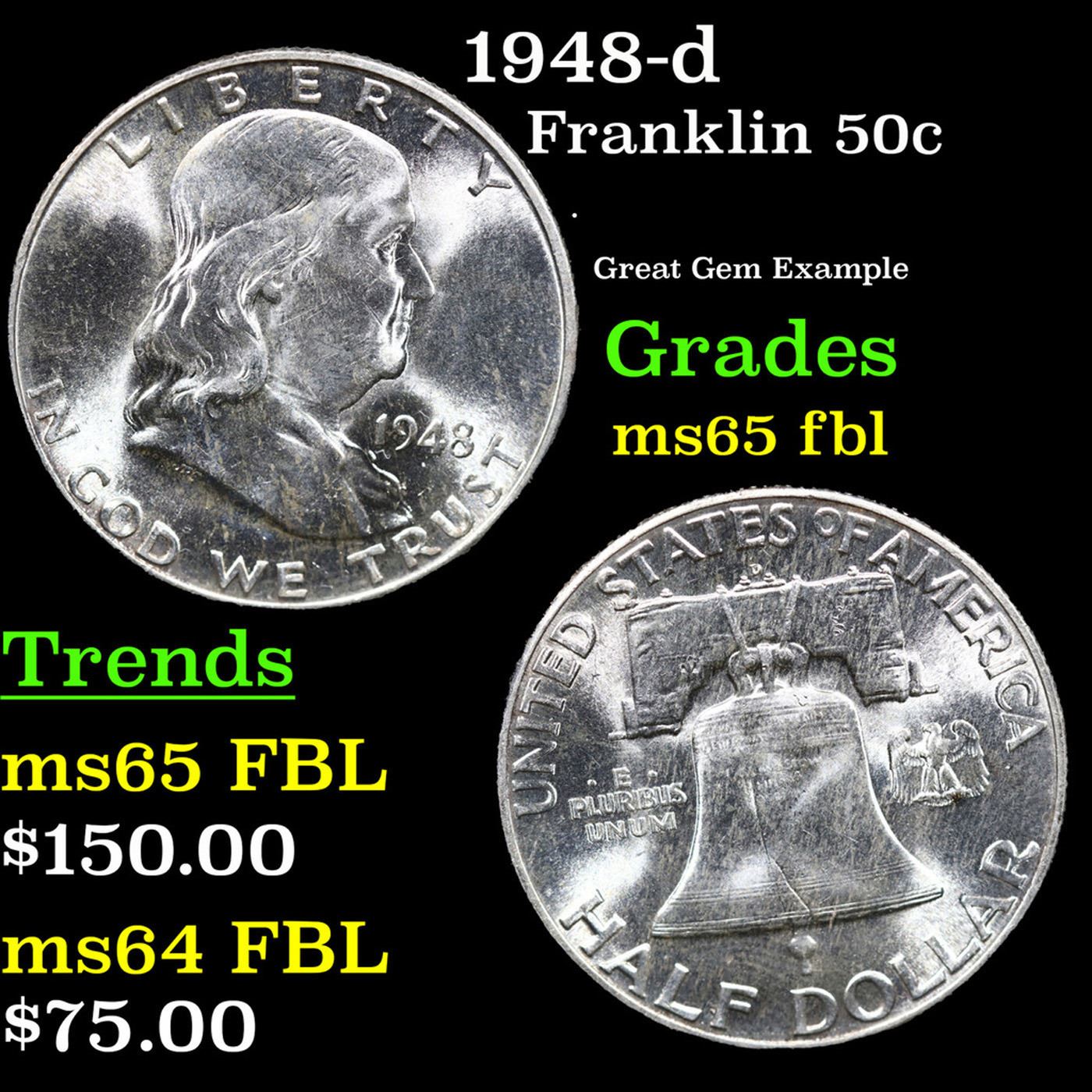 1948-d Franklin Half Dollar 50c Grades GEM FBL.