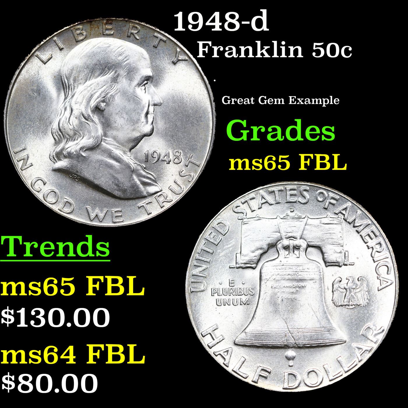 1948-d Franklin Half Dollar 50c Grades GEM FBL.