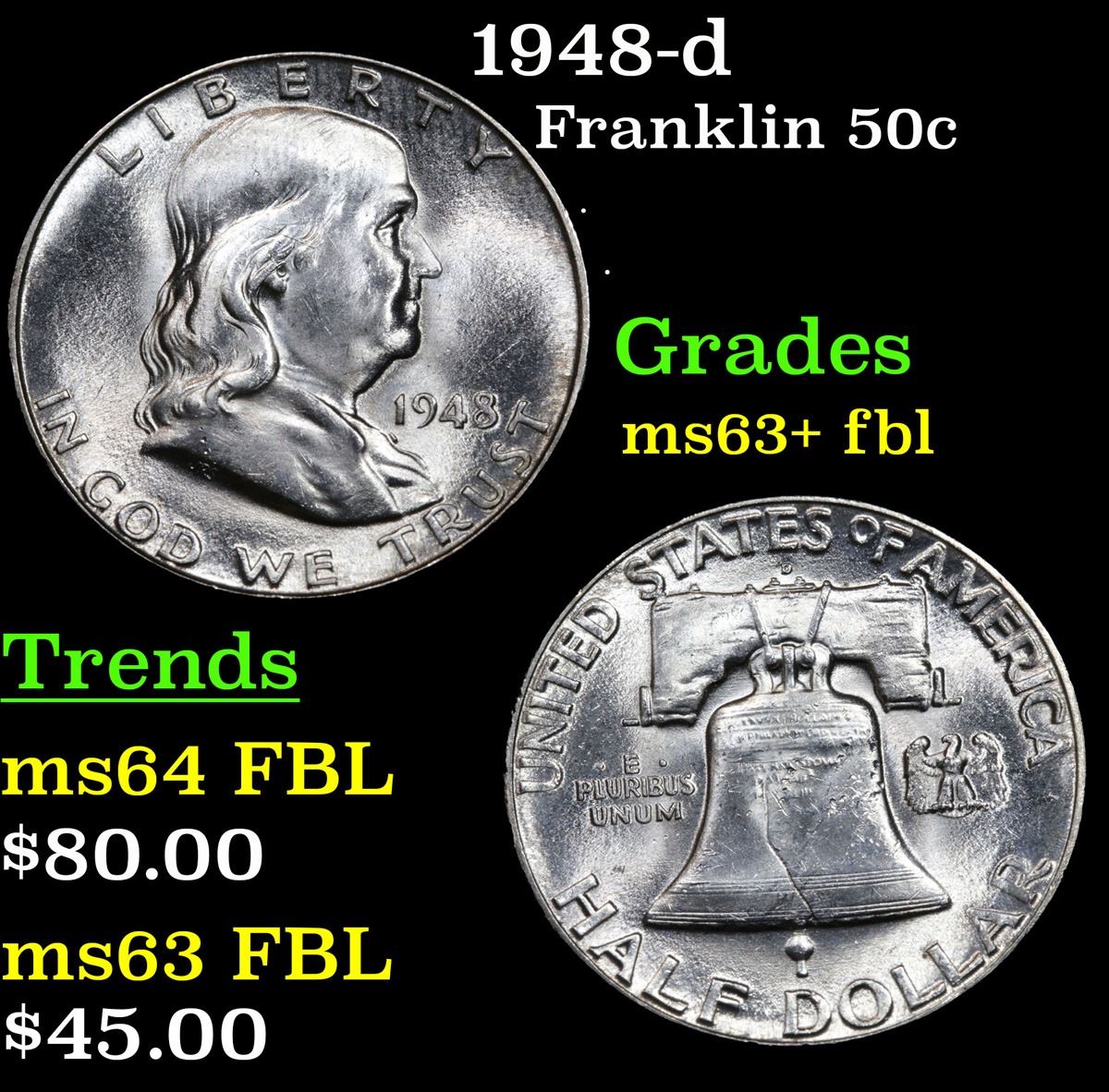 1948-d . . Franklin Half Dollar 50c Grades Select Unc+ FBL.