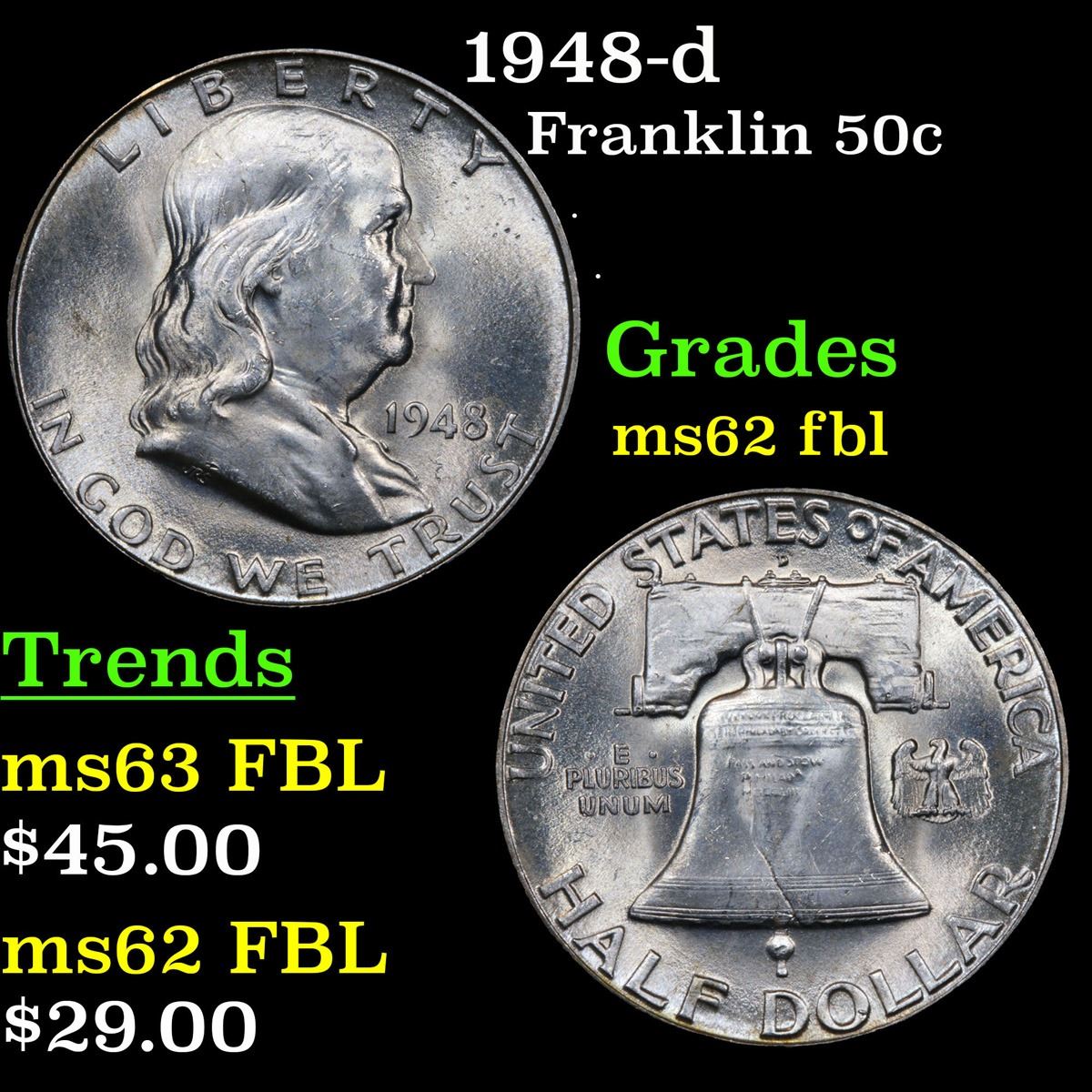 1948-d Franklin Half Dollar 50c Grades Select Unc FBL.