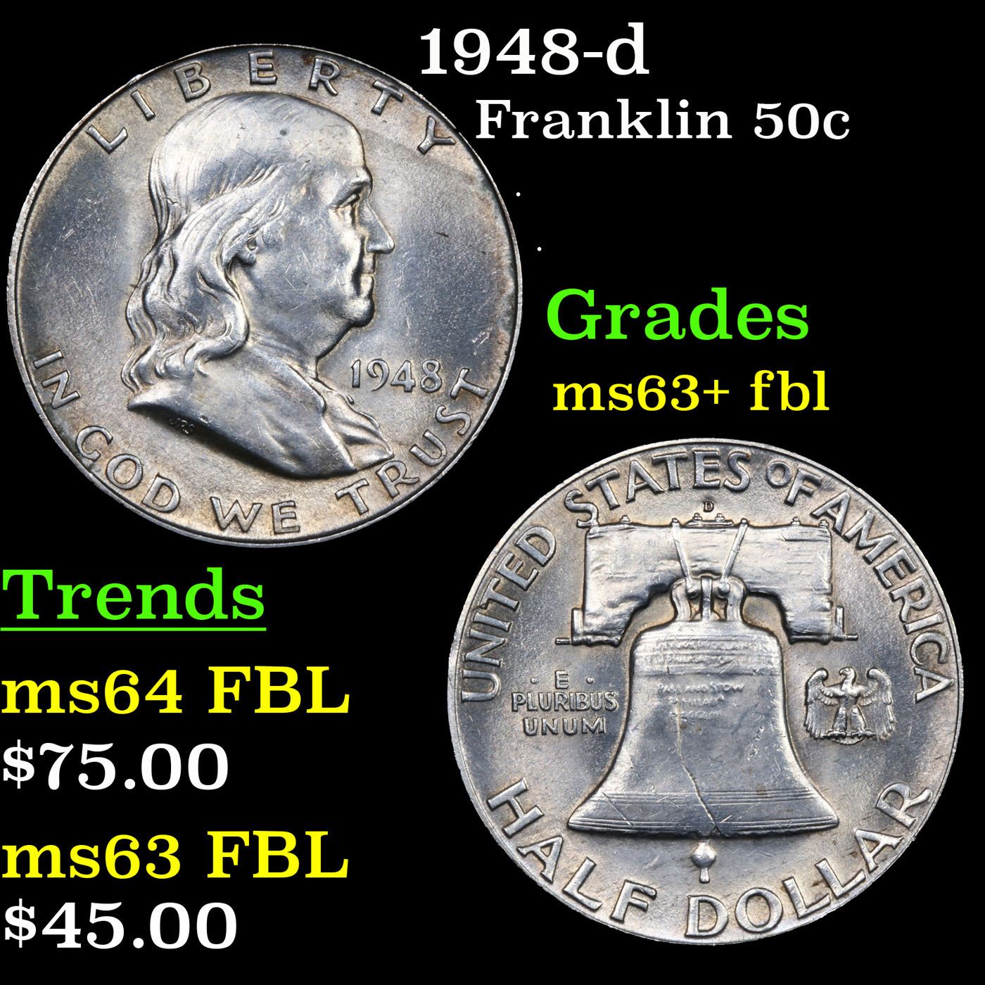 1948-d Franklin Half Dollar 50c Grades Select Unc+ FBL.
