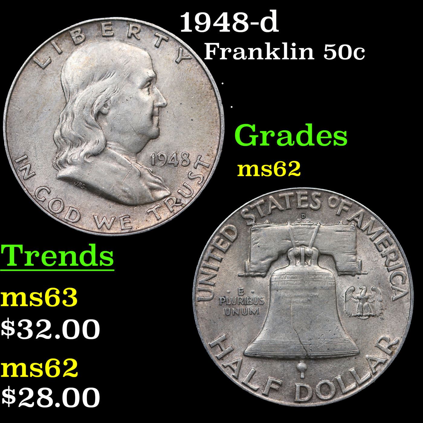 1948-d Franklin Half Dollar 50c Grades Select Unc.