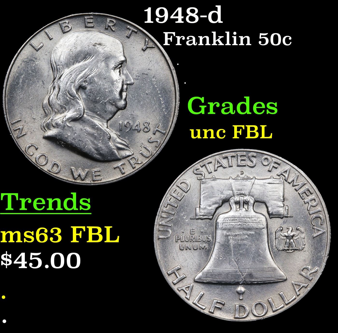 1948-d Franklin Half Dollar 50c Grades UNC FBL.