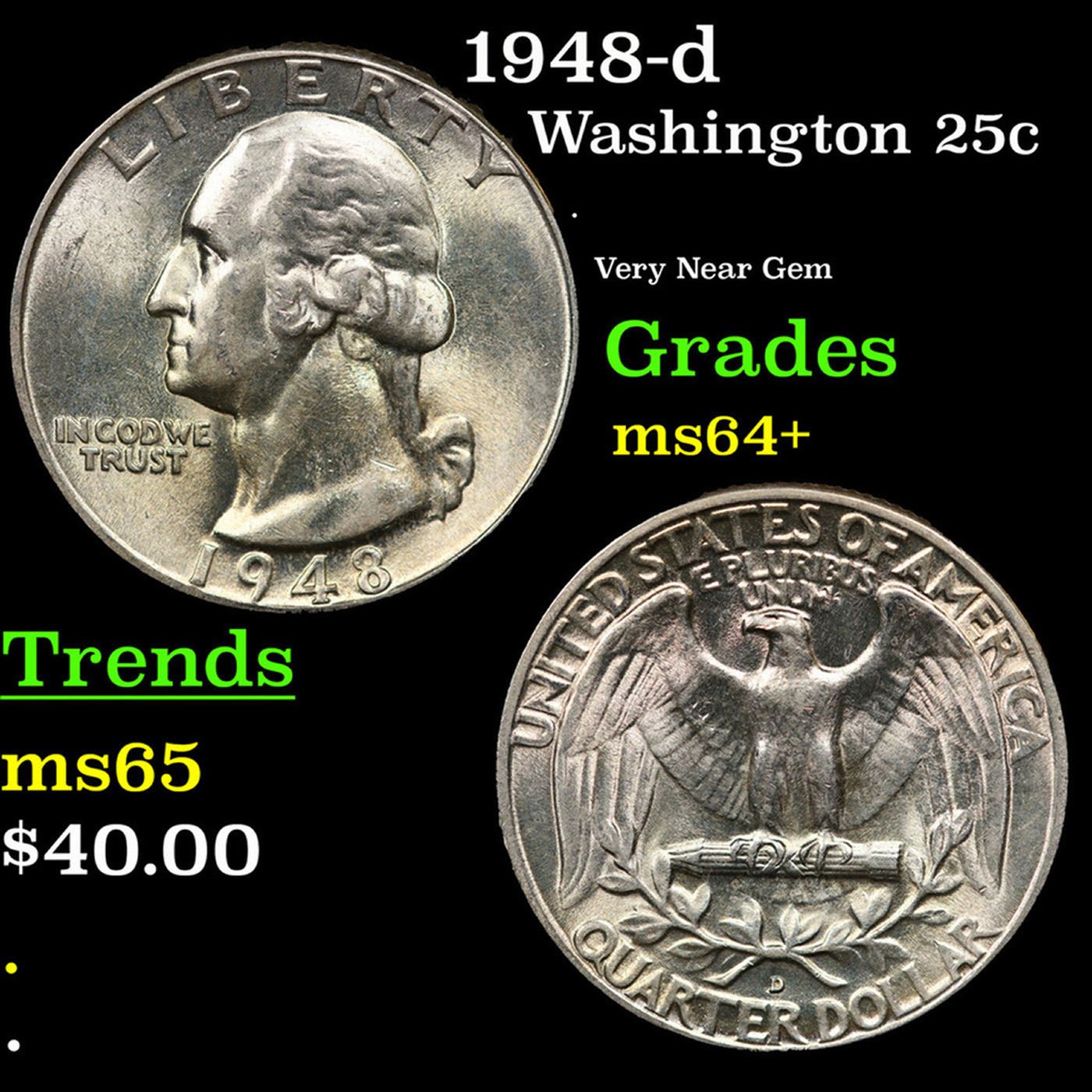 1948-d Washington Quarter 25c Grades Choice+ Unc.