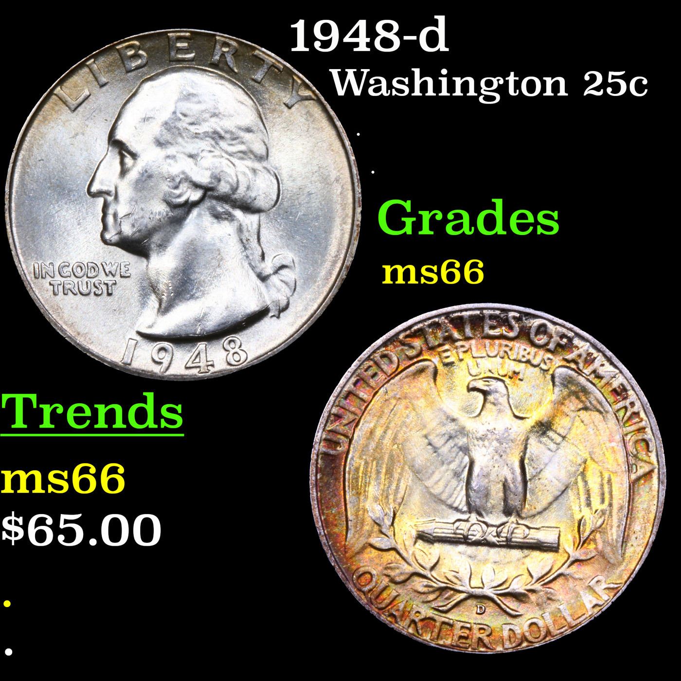 1948-d Washington Quarter 25c Grades GEM+ Unc.