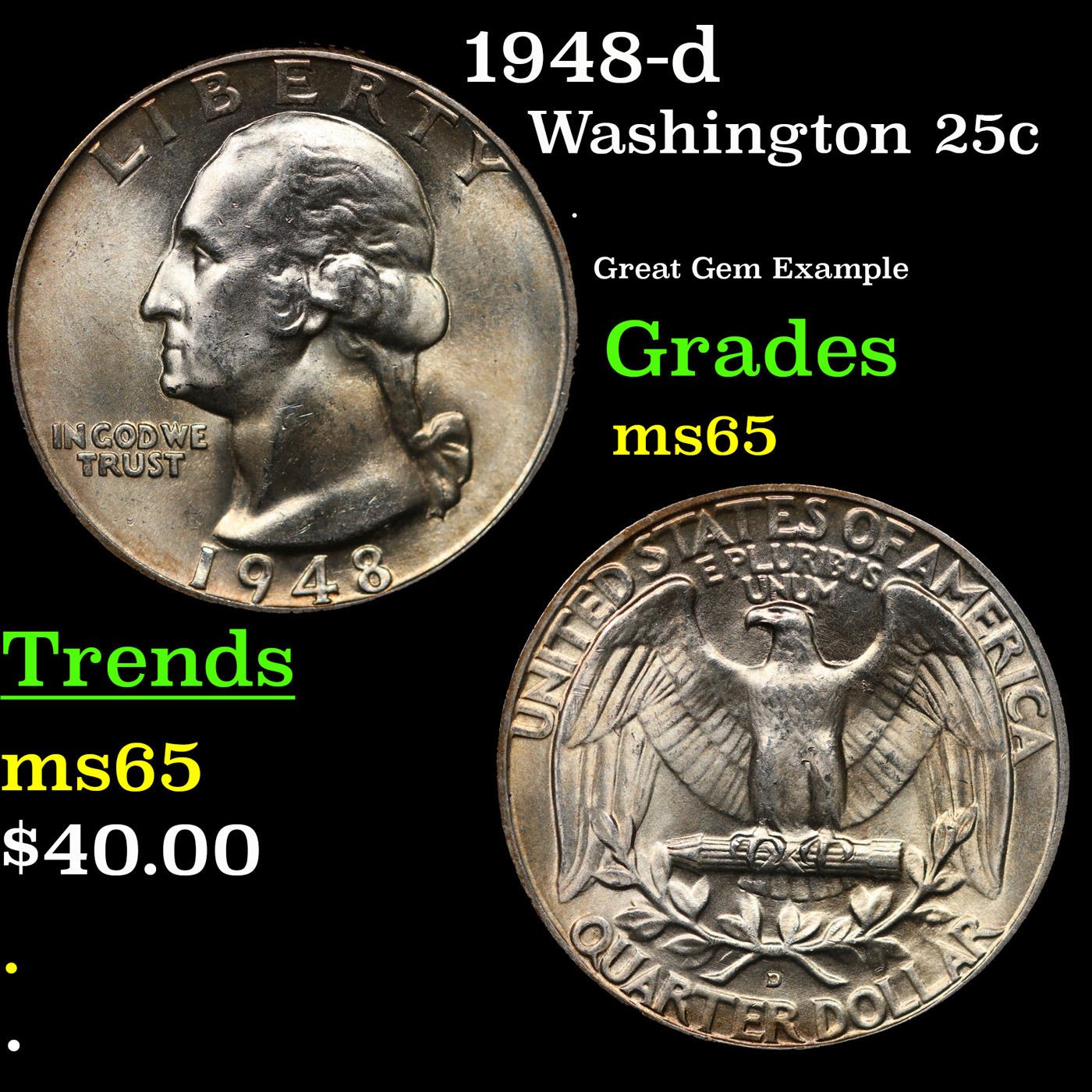 1948-d Washington Quarter 25c Grades GEM Unc.