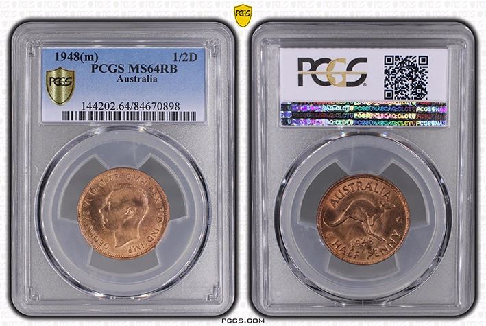 1948(m) Australian Half Penny - PCGS MS 64RB