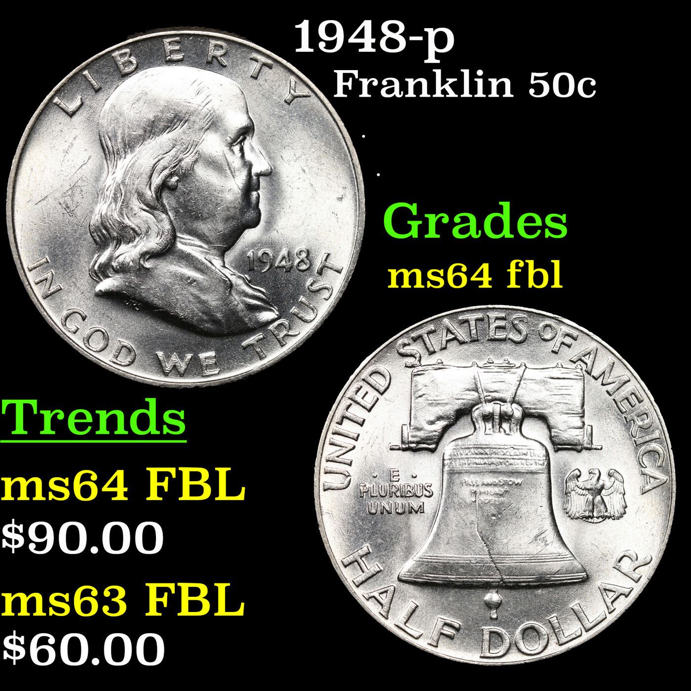 1948-p Franklin Half Dollar 50c Grades Choice Unc FBL.