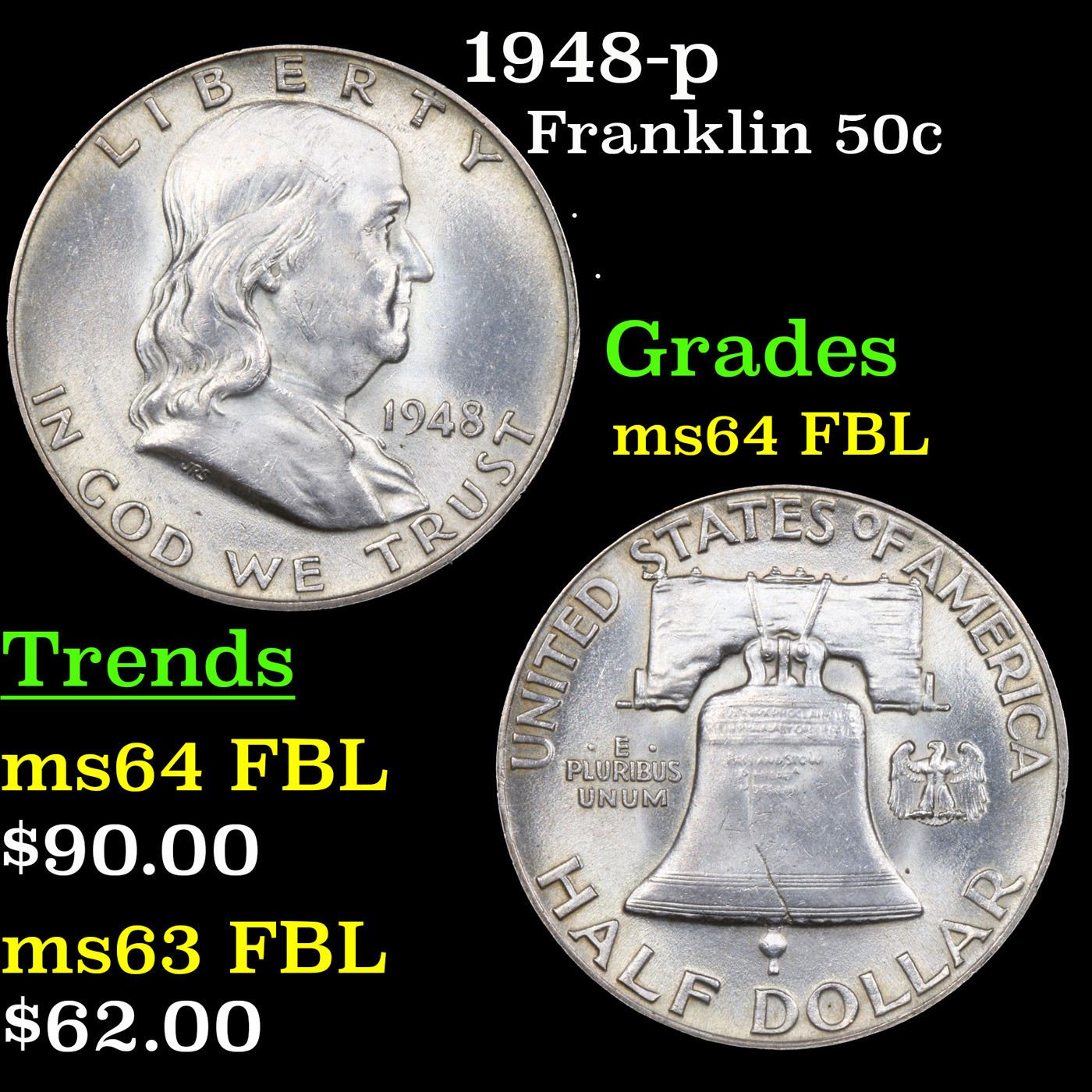 1948-p Franklin Half Dollar 50c Grades Choice Unc FBL.