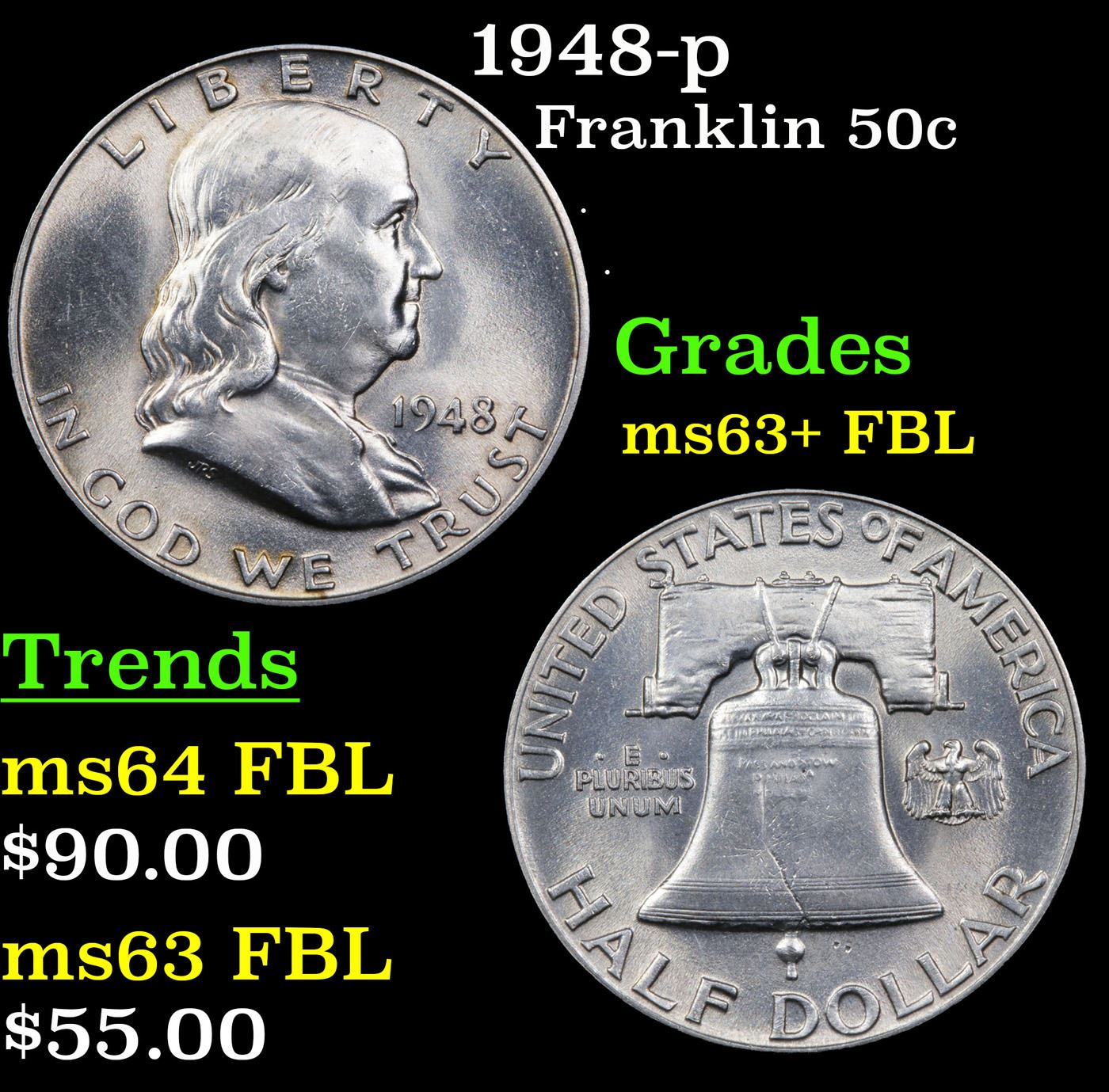1948-p Franklin Half Dollar 50c Grades Select Unc+ FBL.
