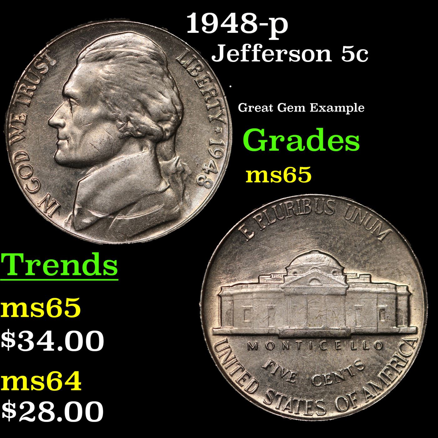 1948-p Jefferson Nickel 5c Grades GEM Unc.