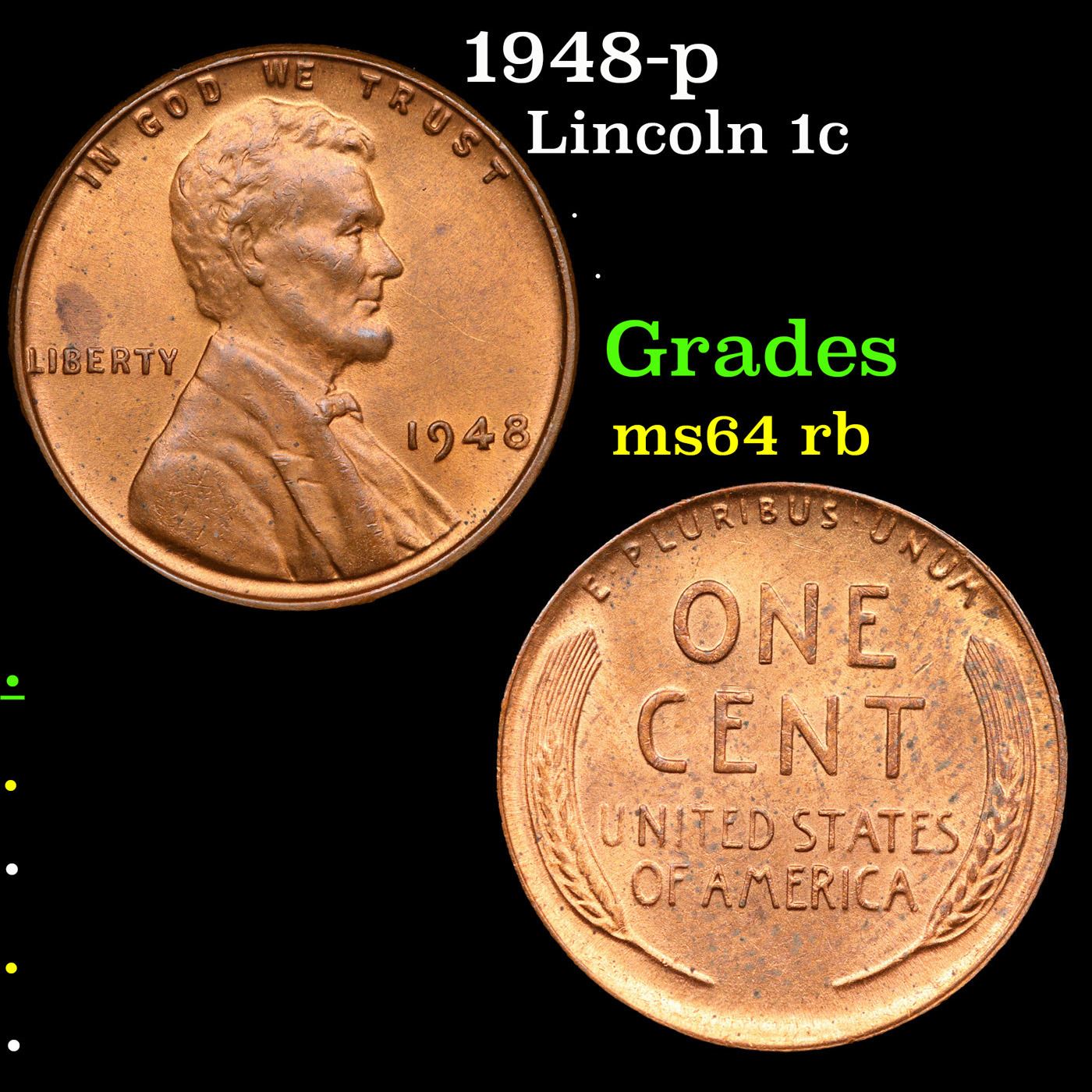 1948-p Lincoln Cent 1c Grades Choice Unc RB.
