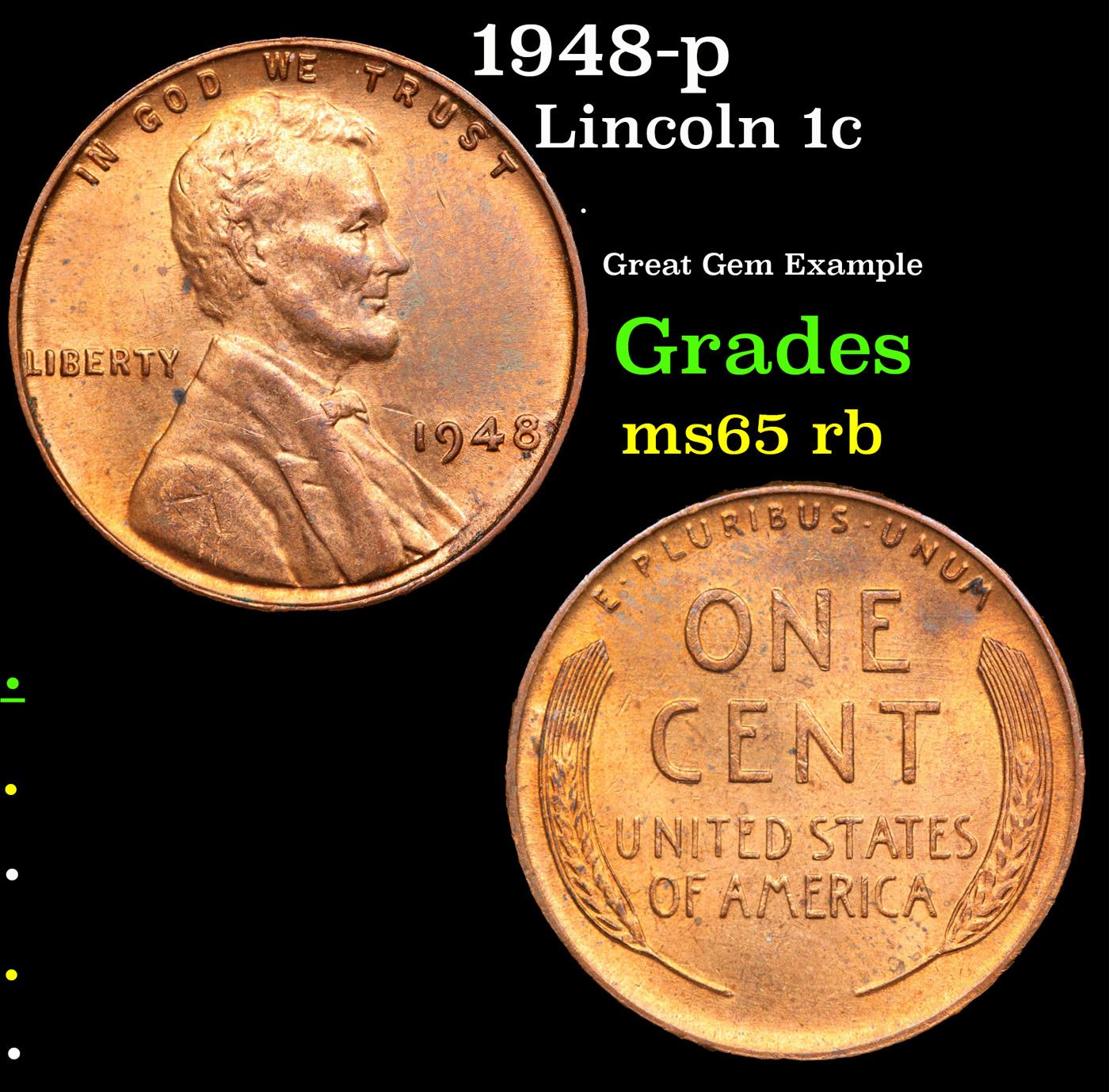 1948-p Lincoln Cent 1c Grades GEM Unc RB.