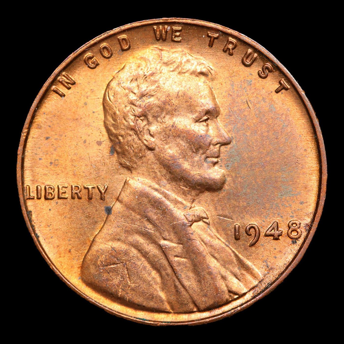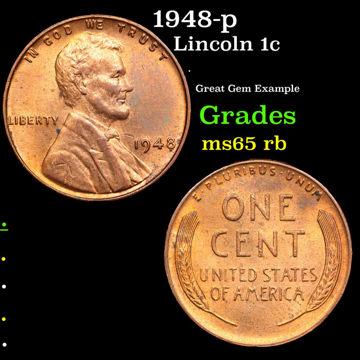 1948-p Lincoln Cent 1c Grades GEM Unc RB.