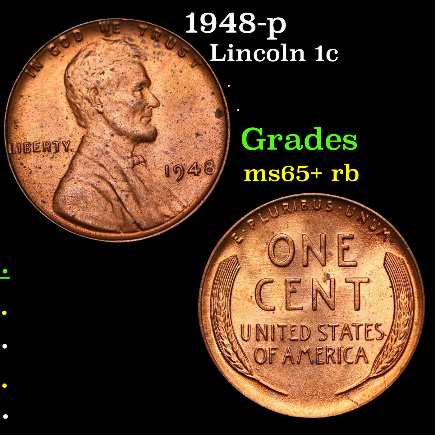 1948-p Lincoln Cent 1c Grades Gem+ Unc RB.