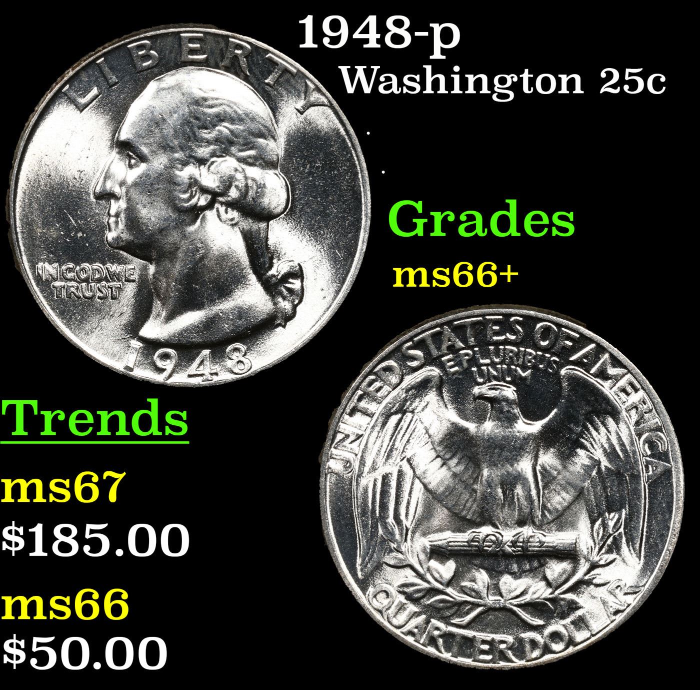 1948-p Washington Quarter 25c Grades GEM++ Unc.