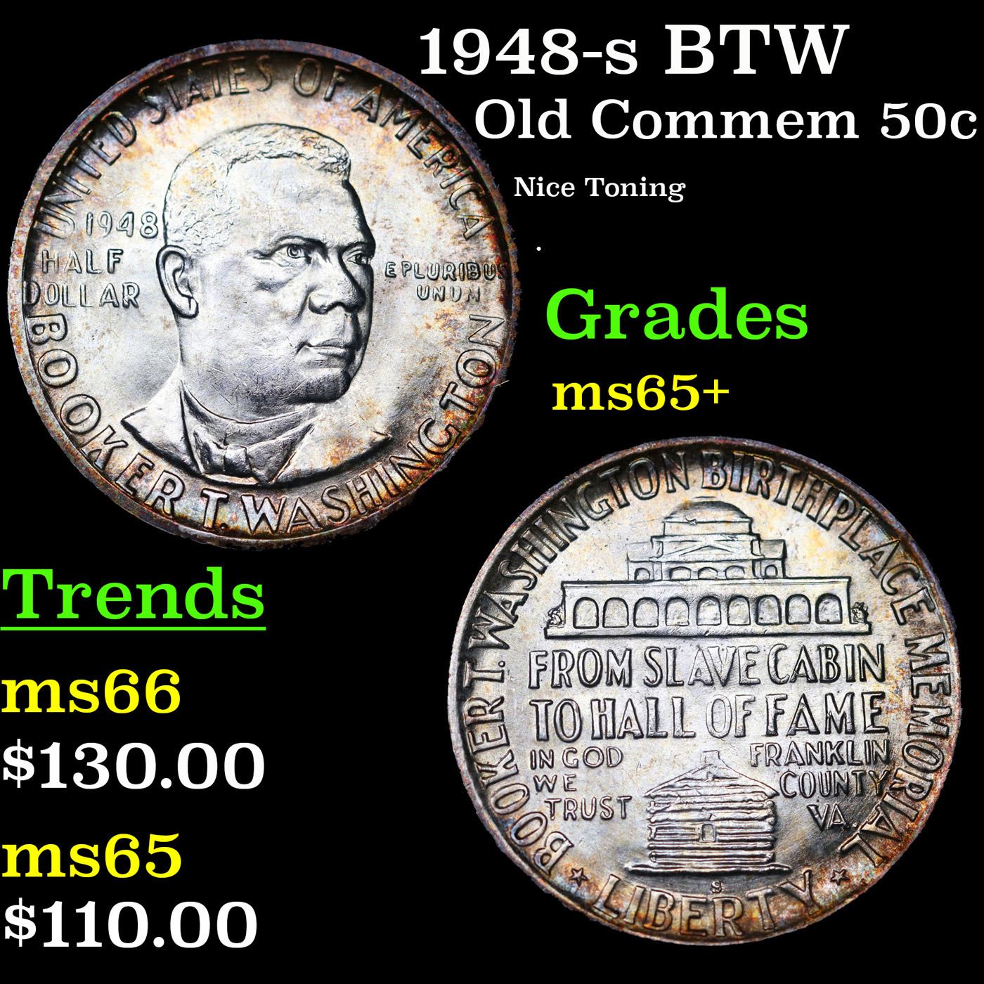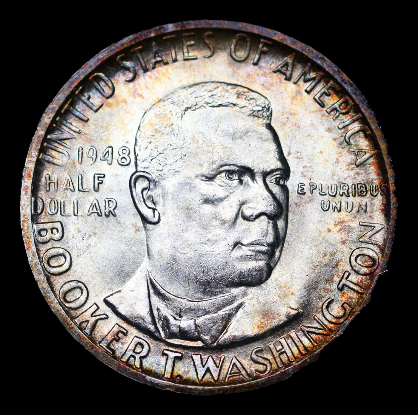1948-s BTW Old Commem Half Dollar 50c Grades GEM+ Unc. When examining a Booker T. Washington commemorative look for wear on the high points, on the obverse that is Mr. Washington's right Cheek (from his perspective), and on the reverse the arches on the top building.