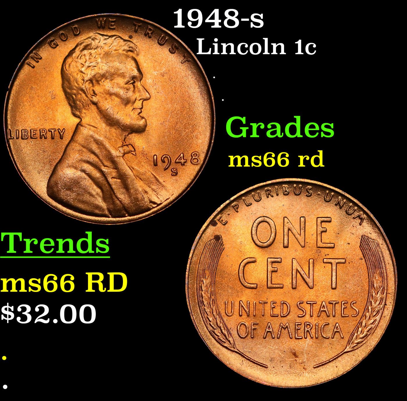 1948-s Lincoln Cent 1c Grades GEM+ Unc RD.