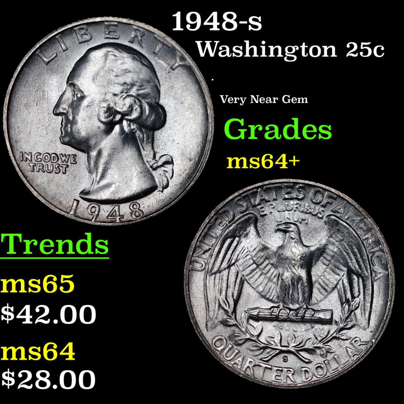 1948-s Washington Quarter 25c Grades Choice+ Unc.