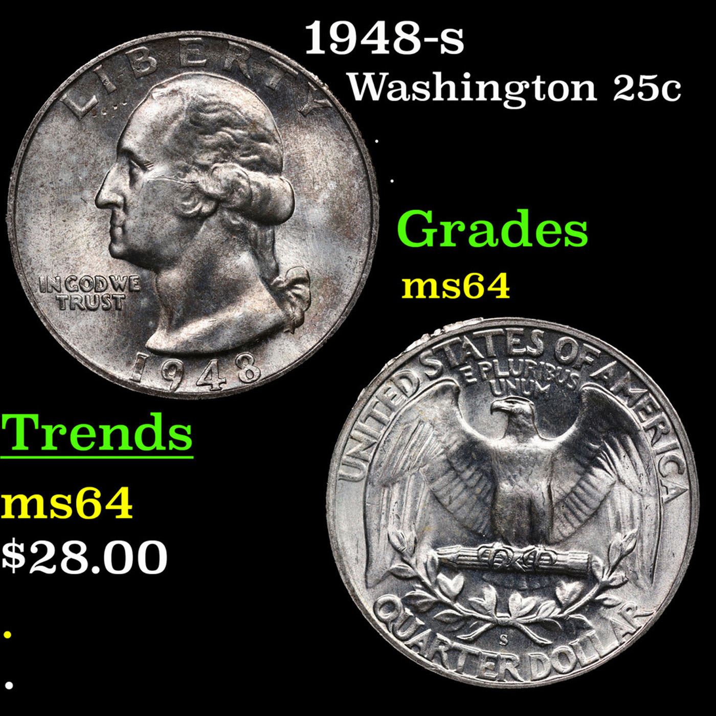 1948-s Washington Quarter 25c Grades Choice Unc.