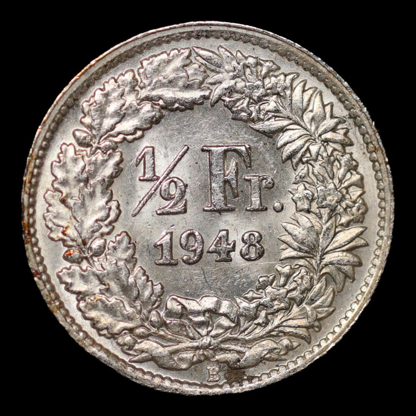 1948B Switzerland 1/2 Franc Silver KM# 24 Grades Select+ Unc