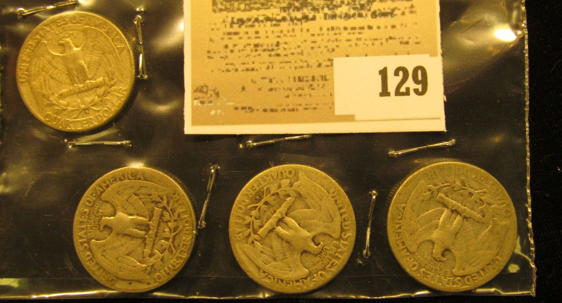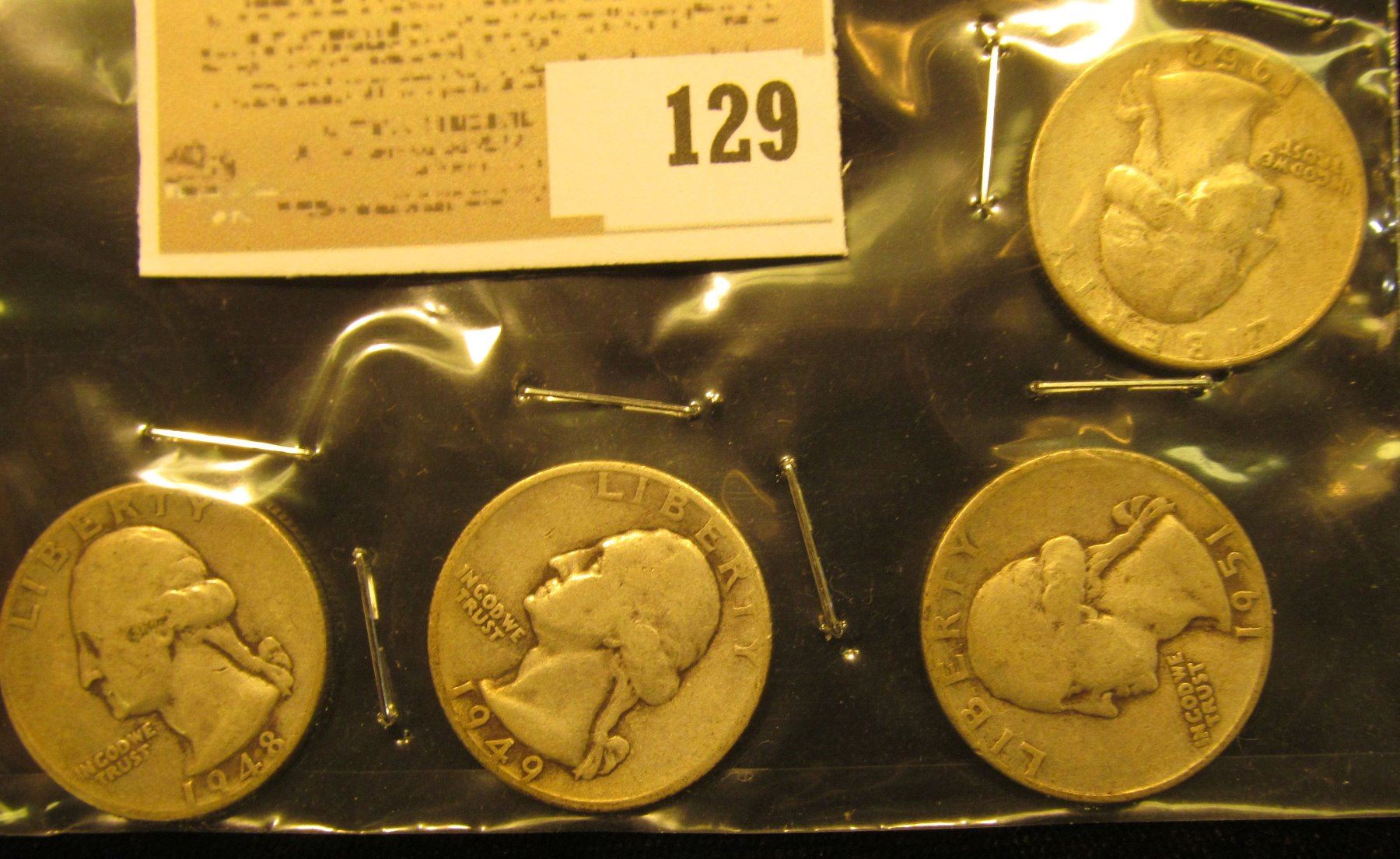1948P, 49D, 51P, & 53S Silver Washington Quarters.