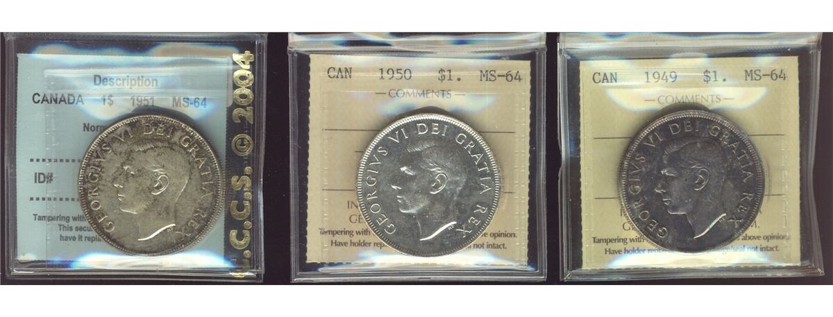1949 $1, 1950 ICCS MS64 & 1951 CCCS MS64. Lot of 3 coins.