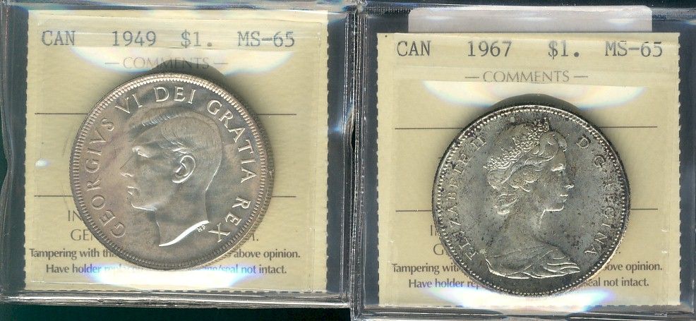 1949 $1 & 1967 ICCS MS65. Lot of 2 coins.