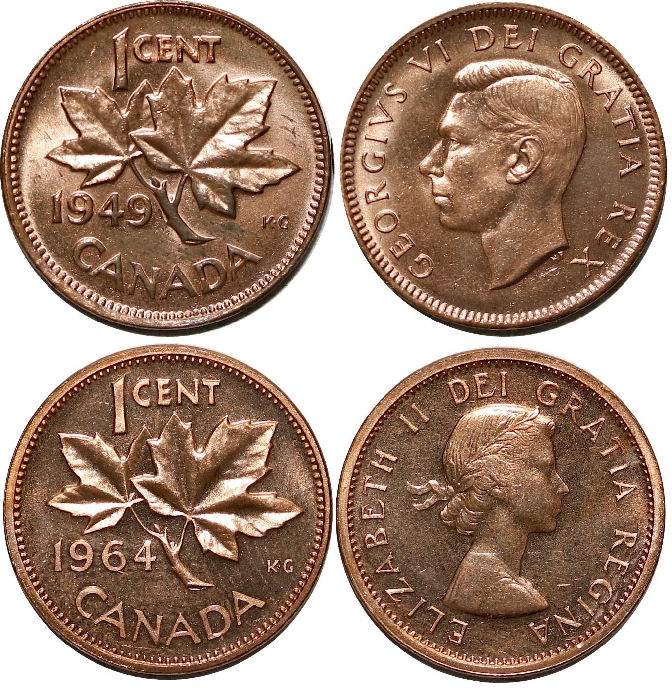 1949 1¢ A Betw BU Red & 1964 PL Red. Lot of 2 coins.