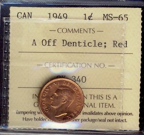 1949 1¢ A Off Dent. ICCS MS65RD.