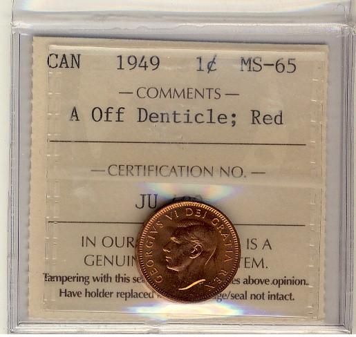 1949 1¢ A Off Denticle ICCs MS65 Red.