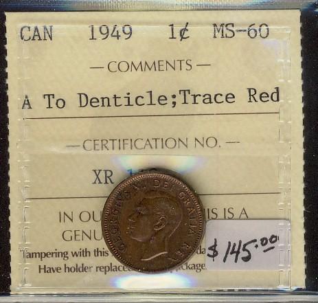 1949 1¢ A To Denticle ICCS MS60 Trace of Red