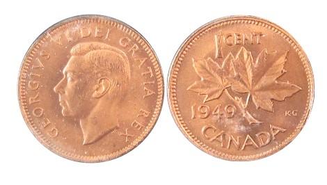 1949 1¢ A to Dent ICCS MS65RD. 100% red and lustrous. Designated as lacquered.