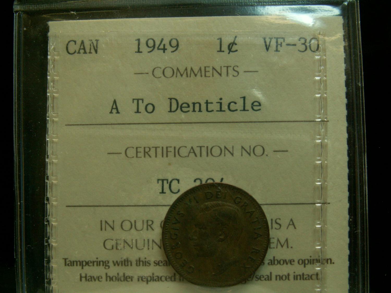 1949 1¢ A to Denticle ICCS VF30