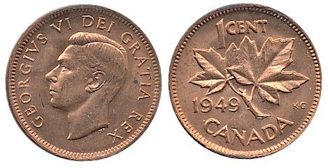 1949 1¢ A to ICCS MS64RD. Full red lustre. A superior example. Near Gem.