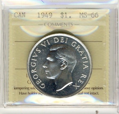 1949 1 Dollars, ICCS MS66. Nice eye appeal.