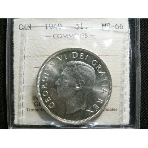 1949 $1 ICCS MS66. A stunning mirror like coin.