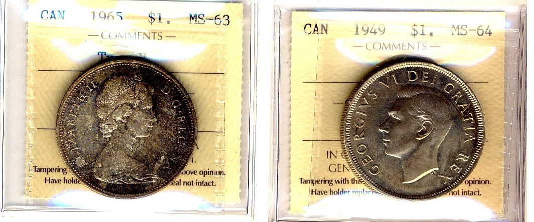 1949 $1 MS64 & 1965 Type 5 $1 MS63. Lot of 2 ICCS graded coins.