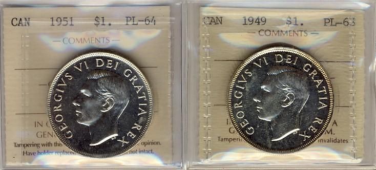 1949 $1 PL63 & 1951 $1 PL64. Lot of 2 coins both white.