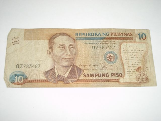 1949 10 SAMPUNG PISO *PHILIPPINES - REPUBLIKA NG PHILIPINAS*!! ***Coin, Currency & All Items Listed in this auction - Grades, Conditions and Values are not Safe Deposit Coins LLC Responsibilty. Grades, Condition and Values are determined by Consigner(s) & Buyers ONLY***