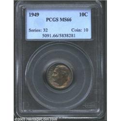 <TABLE cellSpacing=0 cellPadding=0 width="100%" bgColor=#000000 border=0><TBODY><TR><TD width="100%"><TABLE cellSpacing=1 cellPadding=3 width="100%" border=0><TBODY><TR><TD width="100%" bgColor=#79735c><FONT face=arial color=#ffffff size=3><B>Description</B> </FONT></TD></TR><TR><TD width="100%" bgColor=#ffffff><FONT face=arial size=2><B>1949 10C MS66 PCGS.</B></I> Mottled violet and teal, more complete on the obverse where it is on top of lustrous golden color. Well preserved as suggested by the grade, with only the faintest imperfections. </FONT></TD></TR></TBODY></TABLE></TD></TR></TBODY></TABLE><BR><A name=PricesRealized></A><TABLE cellSpacing=0 cellPadding=0 width="100%" bgColor=#000000 border=0><TBODY><TR><TD width="100%"><TABLE cellSpacing=1 cellPadding=3 width="100%" border=0><TBODY><TR><TD width="100%" bgColor=#79735c><A name=PR><FONT face=arial color=#ffffff size=3><B>Previous Prices from Heritage Auctions</B> </FONT></A></TD></TR><TR><TD bgColor=#f6f6ed><TABLE cellSpacing=0 cellPadding=0 width="100%" border=1><TBODY><TR><TD align=middle width="33%"><B>Date</B></TD><TD align=middle width="33%"><B>Service</B></TD><TD align=middle width="33%"><B>Price</B></TD></TR><TR bgColor=whitesmoke><TD width="33%"><B>11/28/2000</B></TD><TD width="33%">PCGS</TD><TD width="33%">$27.00</TD></TR><TR bgColor=whitesmoke><TD width="33%"><B>07/03/2001</B></TD><TD width="33%">ANACS</TD><TD width="33%">$31.00</TD></TR><TR bgColor=whitesmoke><TD width="33%"><B>01/09/2001</B></TD><TD width="33%">ANACS</TD><TD width="33%">$17.00</TD></TR><TR bgColor=whitesmoke><TD width="33%"><B>06/17/2003</B></TD><TD width="33%">PCGS</TD><TD width="33%">$4.60</TD></TR></TBODY></TABLE></TD></TR><TR><TD bgColor=#ffffff><FONT face=arial size=1 ?>PLEASE NOTE: All prices realized reflect the final hammer price PLUS the buyer's premium in auctions that charge a buyer's premium. Each item has a notation at the top of the listing indicating whether that lot included a buyer's premium. Example: A item that sells with a final hammer price of $100 and a 20% buyer's premium will display with a price realized of $120. All information listed is intended to be as accurate as possible, but errors are possible. Please use this guide carefully and inform us of any inaccuracies. </FONT></TD></TR></TBODY></TABLE></TD></TR></TBODY></TABLE><BR><TABLE cellSpacing=0 cellPadding=0 width="100%" bgColor=#000000 border=0><TBODY><TR><TD width="100%"><TABLE cellSpacing=1 cellPadding=3 width="100%" border=0><TBODY><TR><TD width="100%" bgColor=#79735c colSpan=6><FONT face=arial color=#ffffff size=3><B>Price Guide*</B> </FONT></TD></TR><TR bgColor=#f6f6ed><TD align=middle><B>Grade</B> </TD><TD align=middle><B>Coin World<BR>(Trends)</B> </TD><TD align=middle><B>Numismedia<BR>Retail</B> </TD><TD align=middle><B>Numismedia<BR>Wholesale</B> </TD><TD align=middle><B>Coin<BR>Universe</B> </TD><TD align=middle><B>Heritage<BR>Value Index</B> </TD></TR><TR bgColor=#ffffff><TD align=middle>65</TD><TD align=right>---</TD><TD align=right>$33.00</TD><TD align=right>$26.00</TD><TD align=right>$25.00</TD><TD align=right>$17.50</TD></TR><TR style="FONT-WEIGHT: bold" bgColor=#cccfdd><TD align=middle>66</TD><TD align=right>---</TD><TD align=right>$56.00</TD><TD align=right>$45.00</TD><TD align=right>$65.00</TD><TD align=right>$30.25</TD></TR><TR bgColor=#ffffff><TD align=middle>67</TD><TD align=right>---</TD><TD align=right>$81.00</TD><TD align=right>$65.00</TD><TD align=right>$375.00</TD><TD align=right>$159.25</TD></TR><TR bgColor=#ffffff><TD colSpan=6><FONT size=1>*All information listed is intended to be as accurate as possible, but errors are possible. No item may be returned or refused based on this information which is provided as a service to our customers. You should contact each pricing source directly to determine the accuracy of this information. </FONT></TD></TR></TBODY></TABLE></TD></TR></TBODY></TABLE><BR><TABLE cellSpacing=0 cellPadding=0 width="100%" bgColor=#000000 border=0><TBODY><TR><TD width="100%"><TABLE cellSpacing=1 cellPadding=3 width="100%" border=0><TBODY><TR><TD width="100%" bgColor=#79735c><FONT face=arial color=#ffffff size=3><B>Population Guide</B> </FONT></TD></TR><TR bgColor=#ffffff><TD align=middle><!-- Begin Output of Population Grid--><TABLE cellSpacing=0 cellPadding=0 width="100%" border=0><TBODY><TR><TD vAlign=center><TABLE cellSpacing=0 width="100%" border=1 cellsadding="3"><TBODY><TR><TD vAlign=center><TABLE cellSpacing=0 cellPadding=3 width="100%" border=1><TBODY><TR><TD vAlign=center align=middle bgColor=#f0f1e8 colSpan=2 <CENTER><FONT face=Arial size=2><B>PCGS Pop </B></FONT><CENTER></CENTER></TD><TD vAlign=center align=middle bgColor=#f0f1e8 colSpan=2><CENTER><FONT face=Arial size=2><B>NGC Pop</B></CENTER></FONT></TD></TR><TR><TD vAlign=center><FONT face=Arial size=2>(66)</FONT> </TD><TD vAlign=center align=right><FONT face=Arial size=2>353</FONT> </TD><TD vAlign=center><FONT face=Arial size=2>(66)</FONT> </TD><TD vAlign=center align=right><FONT face=Arial size=2>251</FONT> </TD></TR><TR><TD vAlign=center><FONT face=Arial size=2>(>66)</FONT> </TD><TD vAlign=center align=right><FONT face=Arial size=2>46</FONT> </TD><TD vAlign=center><FONT face=Arial size=2>(>66)</FONT> </TD><TD vAlign=center align=right><FONT face=Arial size=2>207</FONT> </TD></TR></TBODY></TABLE></TD></TR></TBODY></TABLE></TD></TR></TBODY></TABLE><!-- End Output of Population Grid--> Important notice: Heritage usually auctions material at the rate of 200-250 lots per hour. On some occasions eBay Live bid software or the Internet may not be able to keep up with the pace of the auction. We recommend placing a realistic absentee bid now as insurance to avoid disappointment. Occasionally the auctioneer may eliminate or reject an eBay Live bid, and the auctioneer may also reopen a lot after the close of the eBay live bidding (usually because we missed an audience bid), and may reject your bid even if it shows you as the winning bidder. By bidding via eBay Live, you