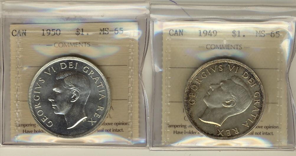 1949 & 1950 $1 ICCS MS65. Lot of 2 ICCS coins.