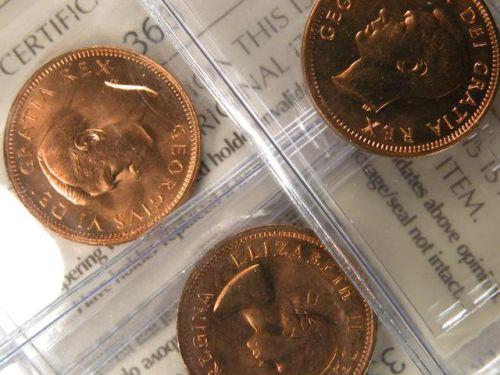 Canada Cent 1949 A off Denticle, 1950 and 1953 No Shoulder Fold, all ICCS MS-64 Red. All over 90% red