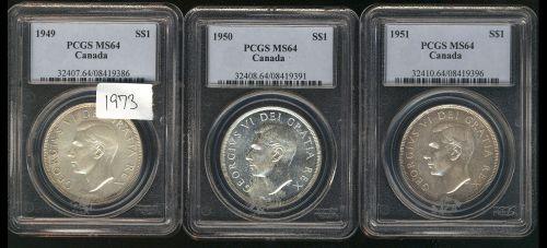 1949, 1950 and 1951 all three pieces are PCGS graded MS64