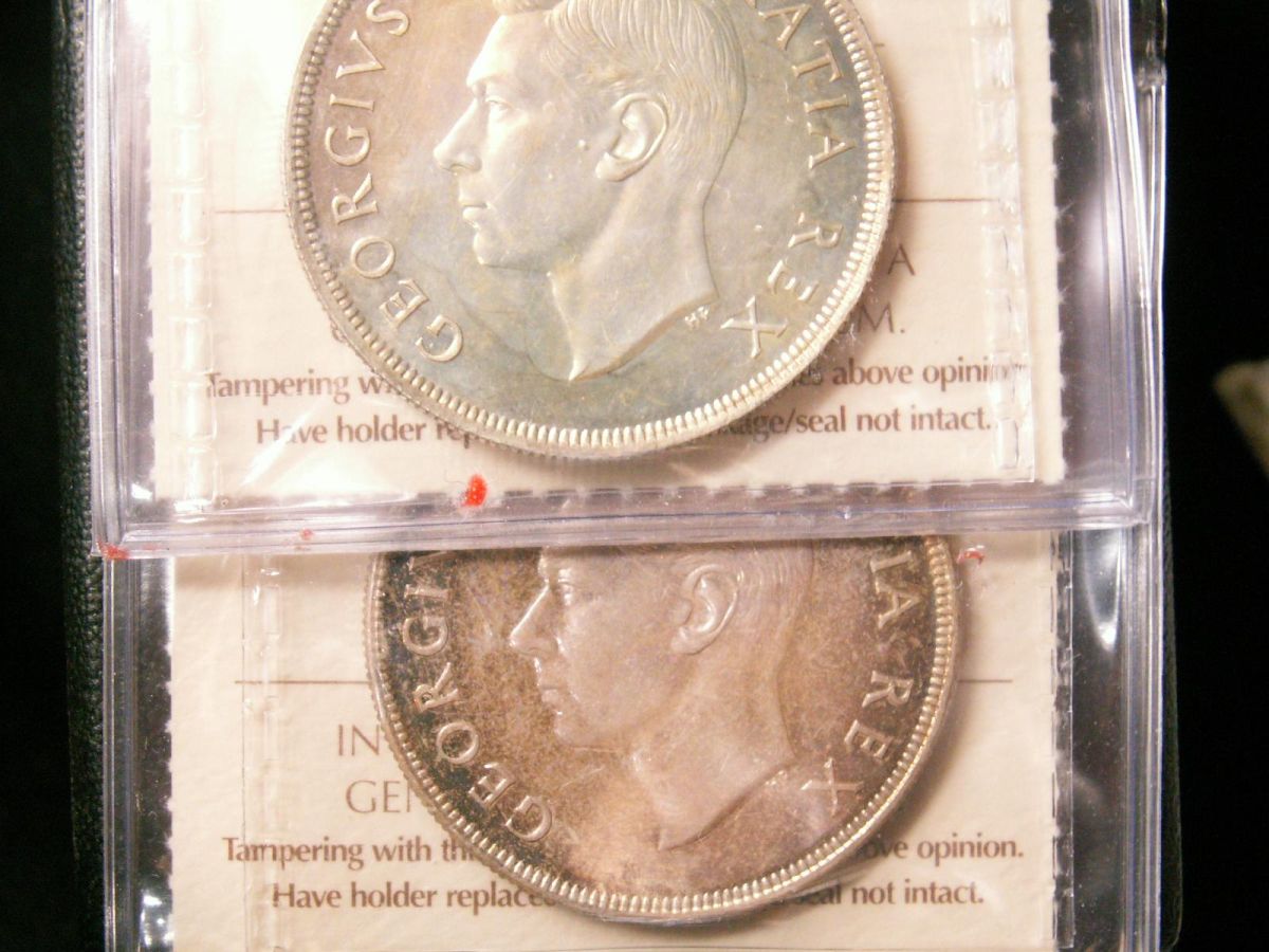 1949 & 1951 ICCS MS64. Lot of 2 toned coins.